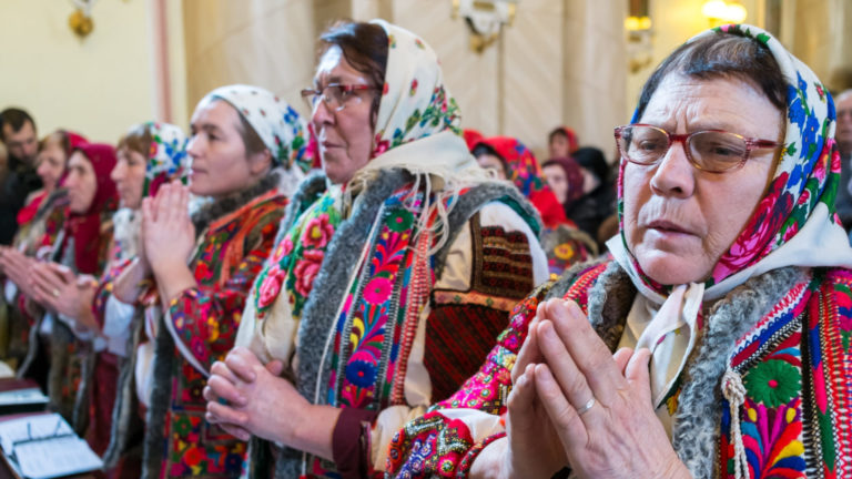 Biserica Sfântul Nicolae din Bacău s-a umplut până la refuz duminică după-amiază cu credincioşi veniţi să participe la prima slujbă religioasă oficiată în