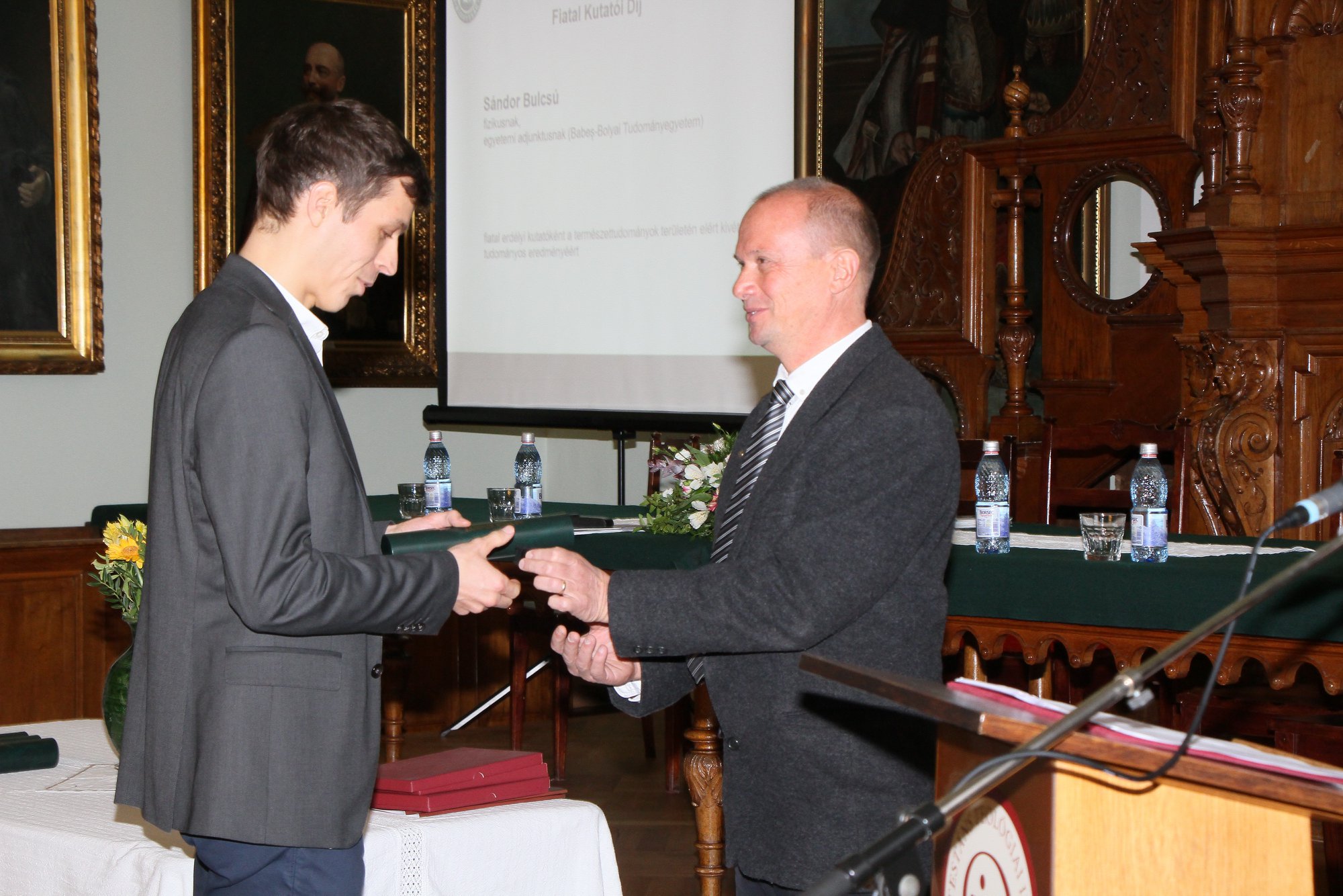 ”Premiul tânărul cercetător” a fost decernat lectorului univ. dr. Bulcsú Sándor, fizician, unul dintre tinerii cercetători transilvăneni prezenți în viața științifică internațională și lui