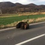 Un urs a fost lovit de o mașină, sâmbătă seara, la ieșirea din localitatea Praid, județul Harghita. Din fericire ocupanţii maşinii nu au fost răniţi Deși autoritățile au găsit repede ursul rănit pe marginea drumului, acesta a rămas în cursul nopții fără niciun fel de îngrijire, și a fost împușcat abia duminică la amiază.
