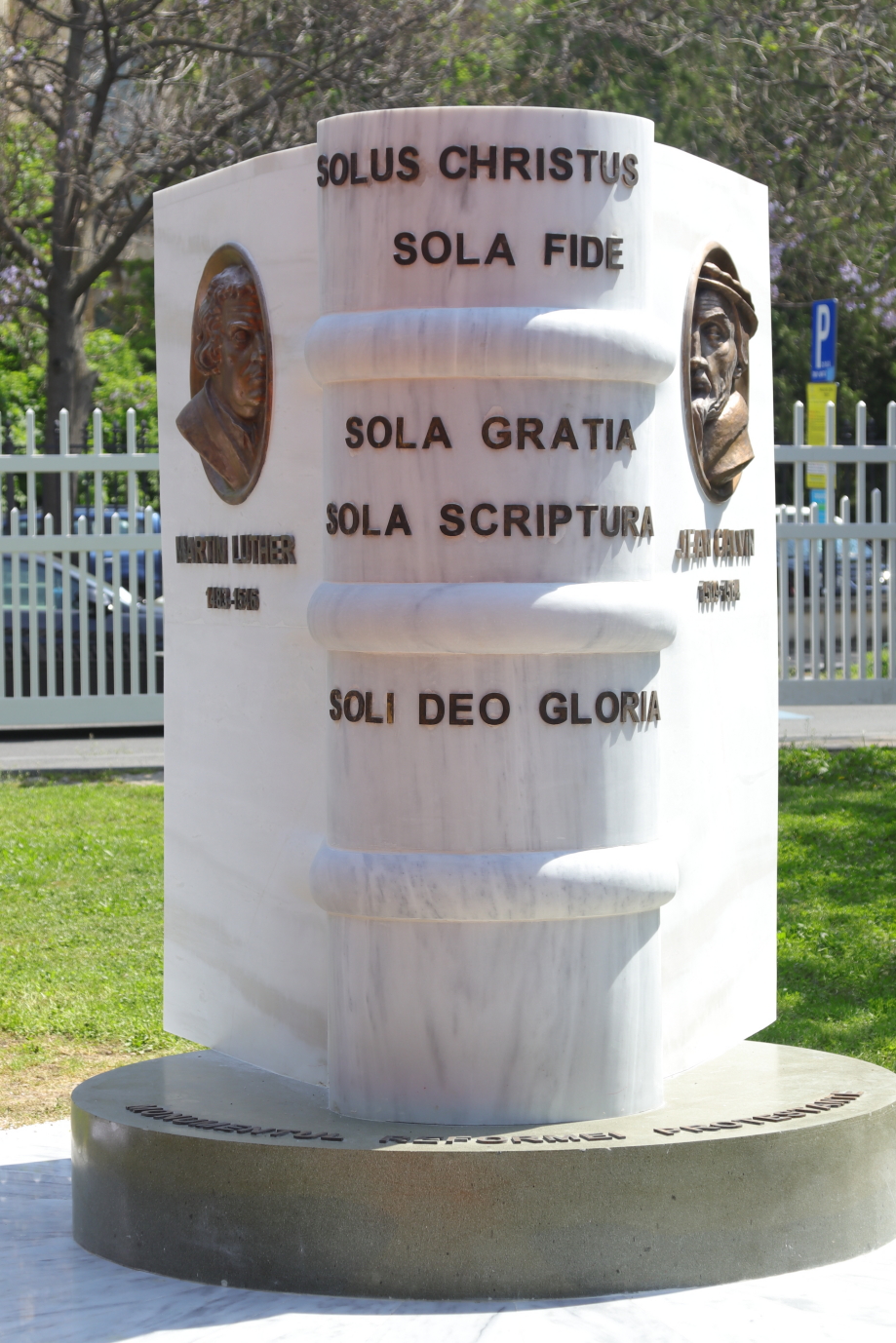 Monumentul, care înfăţişează Biblia deschisă şi portretele lui Martin Luther şi Jean Calvin, inaugurat, pe 4 mai, în Parcul Sala Palatului din Bucureşti, pe locul unde s-a aflat prima biserică reformată, construită de Ferenc Koós şi demolată în 1959, aduce un omagiu celor două personalități marcante ale Reformei Protestante. Monumentul, inaugurat cu prilejul comemorării a 500 de ani de la Reforma Protestantă, celebrează, totodată, şi toleranța religioasă a bucureștenilor. Simbolul Bibliei deschise marchează Spiritul Reformei Protestante, care, prin traducerea Bibliei din limba latină în limbile naţiunilor creştine din Europa și din întreaga lume, au făcut posibil ca Harul și Cuvîntul lui Dumnezeu să ajungă la toți credincioşii.