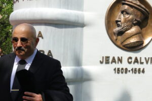 „Monumentul inaugurat acum reprezintă un moment al timpului, este un răspuns la ceea ce s-a petrecut atunci când vechea Biserică Calvină a fost demolată. Ideea de a ridica un monument în locul vechii biserici reformate aparţine atât Presbiteriului, cât şi preotului Zsold Béla. Mesajul evenimentului este că noi, comunitatea reformată din București, suntem o comunitate activă și ne asumăm prezența și rolul, aici, în București, în capitala României. Inițial nu am planificat monumentul aici, în locul fostei biserici reformate, ci alături de Biserica Reformată, la intersecția de lângă Catedrala Sf. Iosif, dar intenția nu a primit autorizație de construcție, din cauza sistemului de conducte subterane, care nu ar fi permis acest lucru, şi atunci a venit ideea că cel mai potrivit loc este aici, unde a fost grădina cimitirului bisericii calvine.